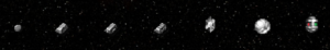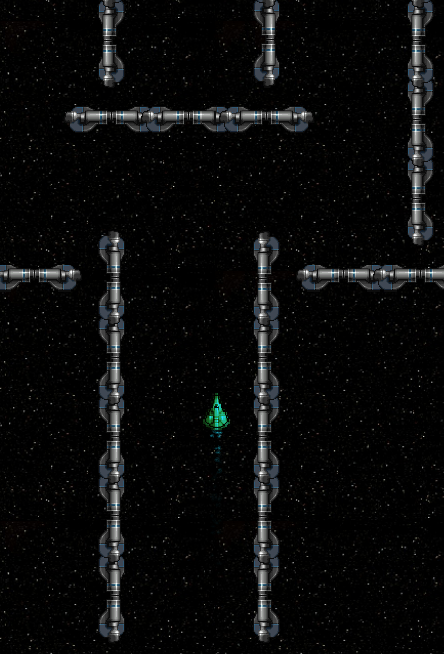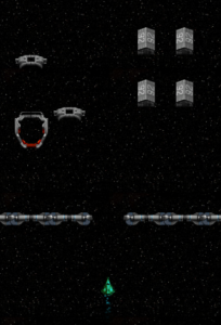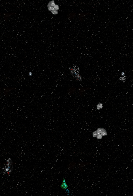 The basic layout of an asteroid field. This is the arrangement I use of the various asteroid obstacles because it seems random, is easy to design, and the obstacles don’t overlap each other.
